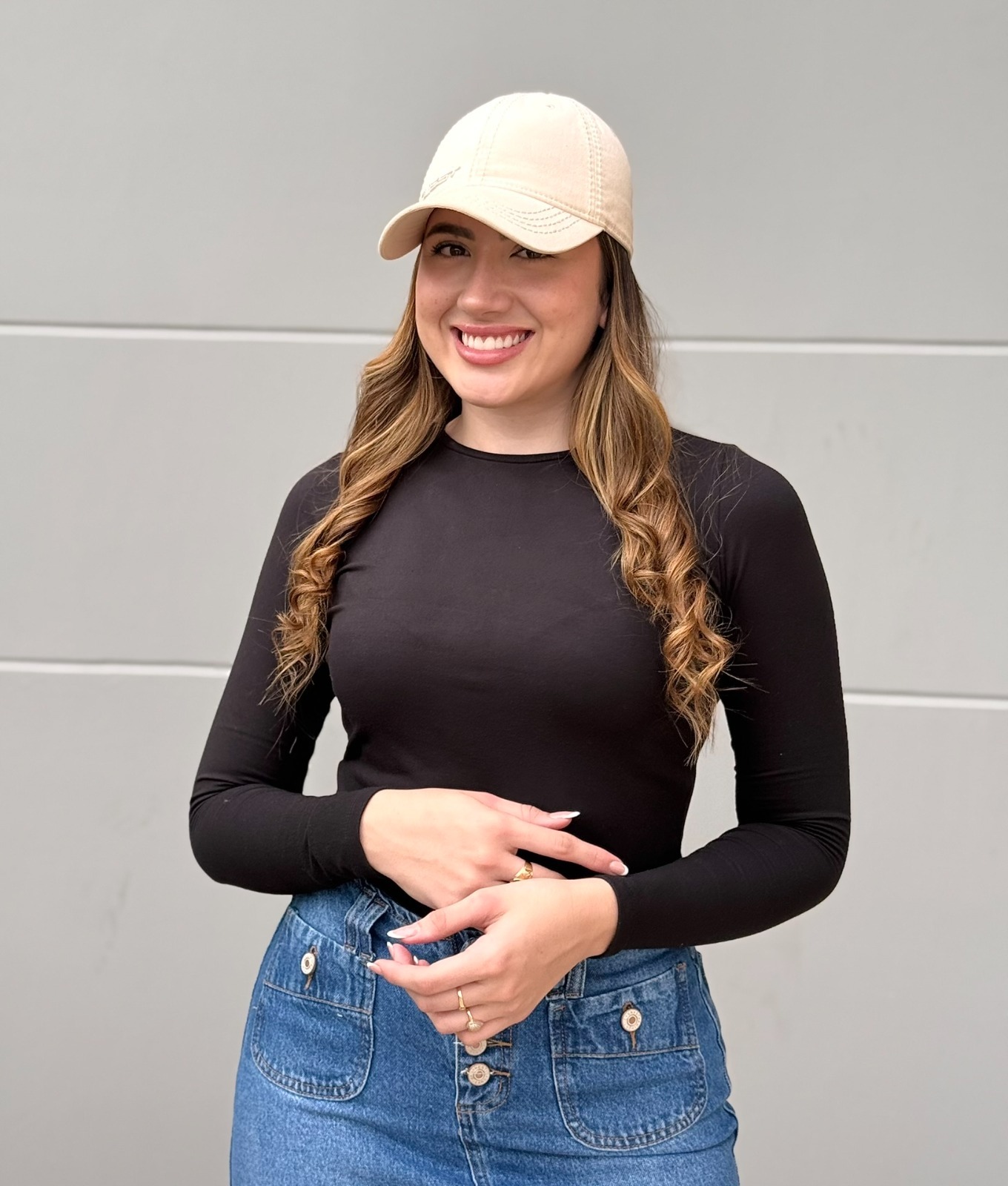 Sencilla, versátil y con mucho estilo. La Básica Negra Long Fit es ese esencial que se adapta a cualquier ocasión. Con mangas largas y un corte ajustado que estiliza, esta camiseta es ideal para combinar con looks casuales o elevar outfits más elegantes. Un básico imprescindible para la temporada.