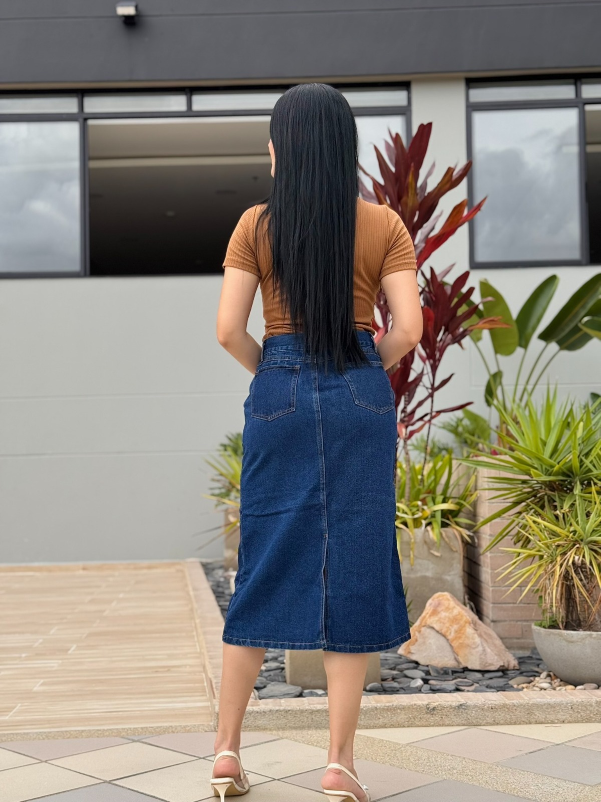 Dale un toque distintivo a tus looks con esta Falda Denim con Corte en “V”, que destaca por su original diseño en la parte frontal que realza la cintura y aporta una silueta favorecedora. Con bolsillos laterales funcionales y un largo midi ideal, esta prenda es perfecta para combinar con tops ajustados o blusas sueltas. Su tono azul oscuro y costuras en contraste le dan un aire moderno, femenino y muy versátil.