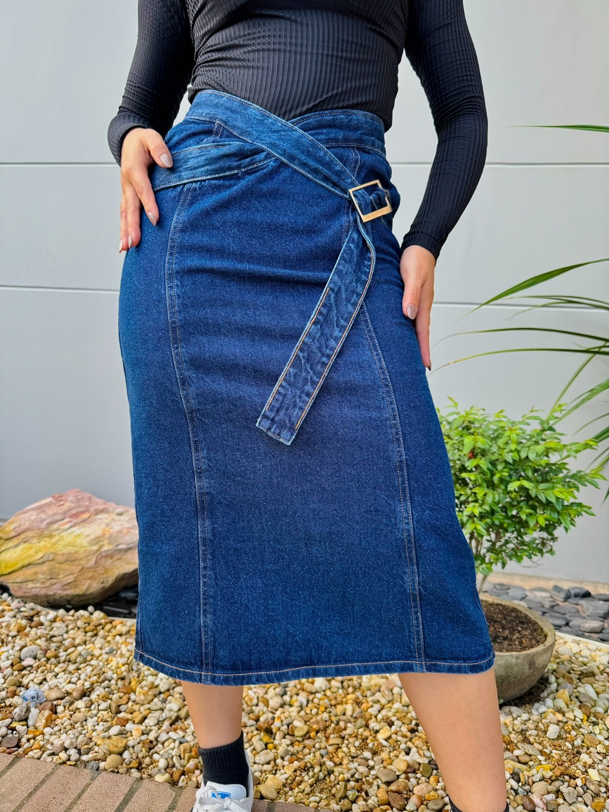 Falda Denim Cruzada con Hebilla
