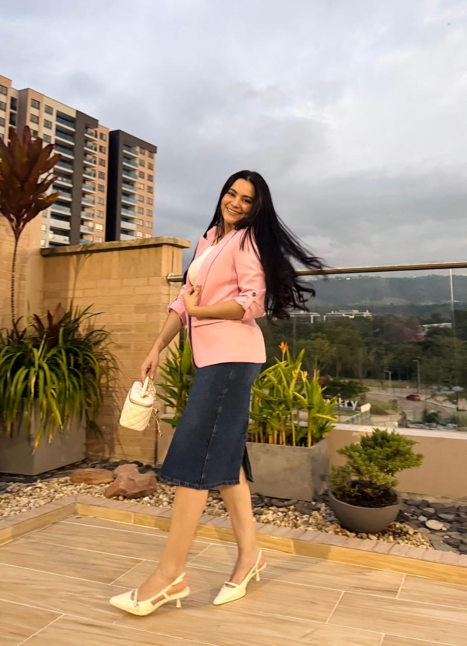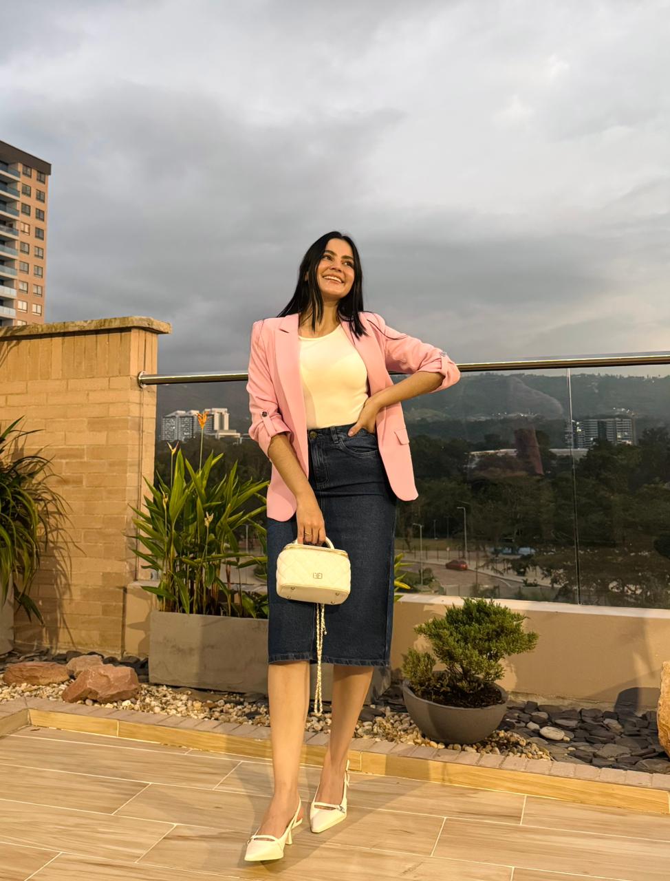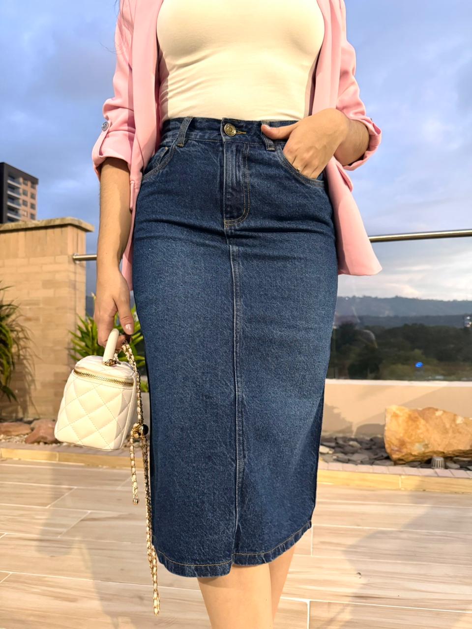La Falda Denim Línea Central está elaborada en denim rígido de tono azul, con un diseño recto que estiliza la figura. Su costura central frontal aporta un detalle distintivo y elegante, ideal para crear looks sobrios, femeninos y versátiles para el día a día.